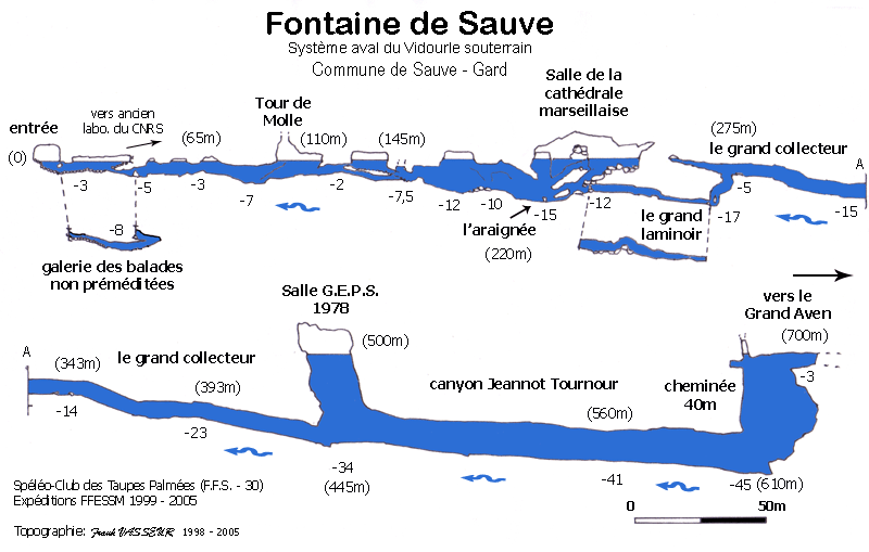 explorant plusieurs cavités du système en amont de Sauve.