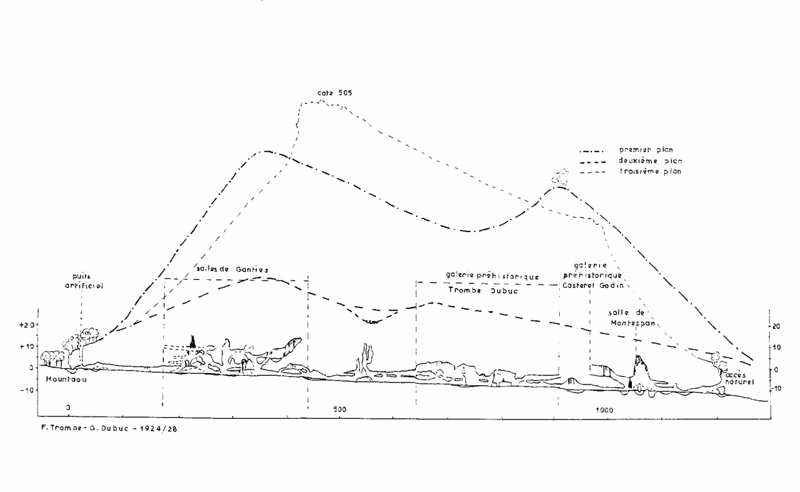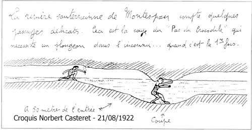 Historique Lorsque Casteret explora cette grotte (en 1922), il dut franchir en apnée, deux siphons. par la suite, le niveau du ruisseau fut abaissé par des travaux de creusement. Depuis, ces siphons s'amorcent rarement. Ces deux photos ont été prises à l'étiage. Description Recommandations
