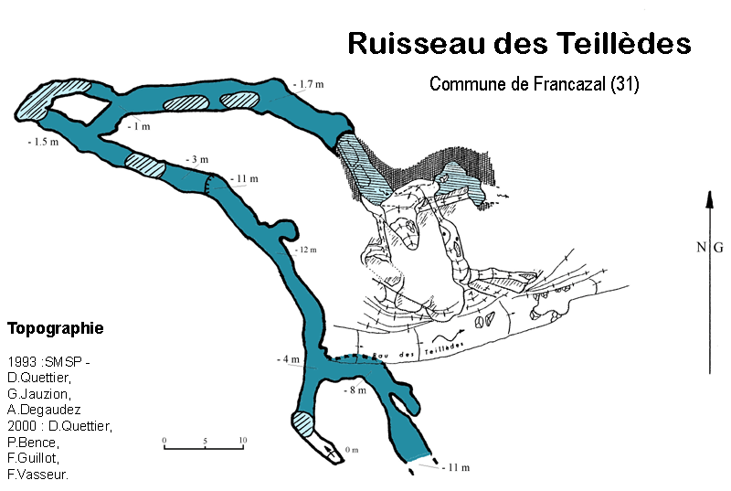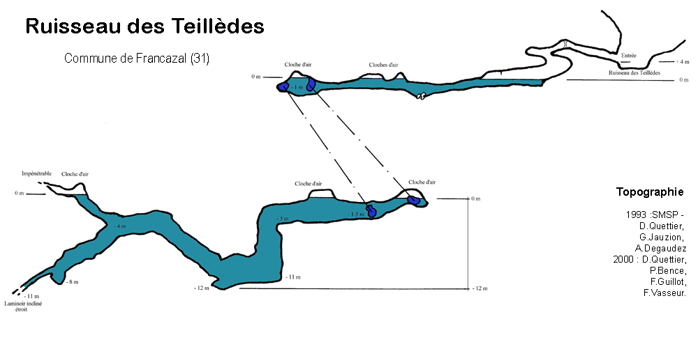 Le siphon se prolonge en fait vers le sud-est, c'est à dire en revenant sous le ruisseau aérien des Teillèdes.