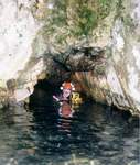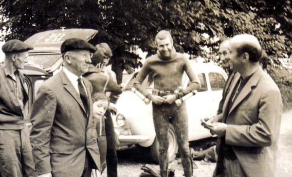 A 49 mètres de l'entrée et par -16 mètres de fond, nous nous heurtons à une étroite ouverture. Je crois comprendre que Jean-Louis désire ressortir. Je fais donc demi-tour mais voyant qu'il ne me suit pas, je dois revenir sur mes pas. Je retrouve Jean-Louis, la bouteil-le décapelée, engagé, dans la chatière. Le croyant en difficulté, je le tire par les pieds :pour l'aider à sortir. En réalité, je l'empêchais de passer.