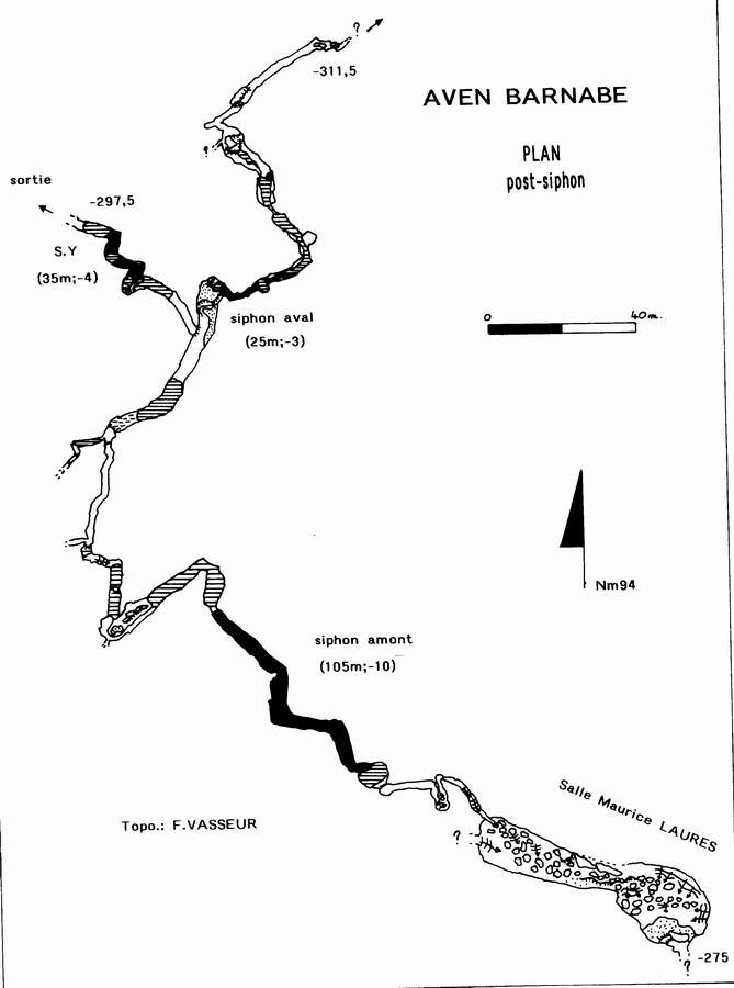 Le 02/07/1994, le S.C.M. organise la plongée du siphon terminal (F.VASSEUR).