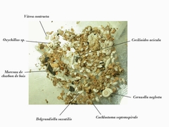 Les coquilles sont ensuite extraites à la pince souple, triées et identifiées au besoin sous la loupe :