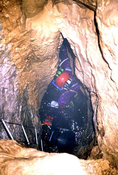 Le 14/07/1994, les étroitures sont élargies pour un pompage (Eaukarst - G.S.F.R.M., Pierre Sferlazza) sans résultats.