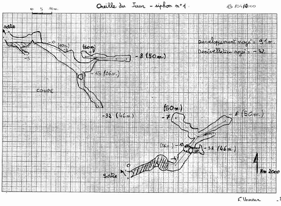 par un pont rocheux, plonge à -23 en suivant un talus d'argile fluide