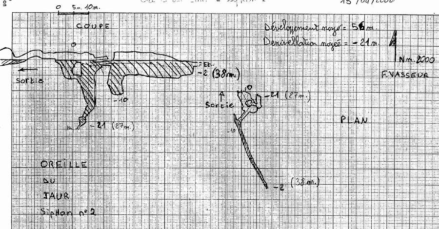 A -2 dans le puits, une galerie noyée (1 x 1m.) débouche 6 m.
