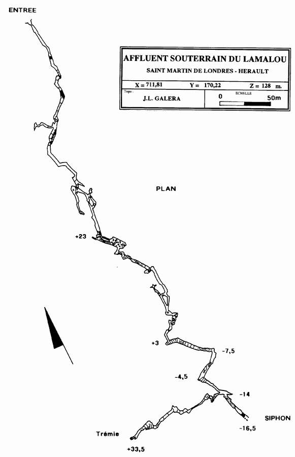sur un siphon situé au bas du P.14 (regard sur le Lamalou). Plongé