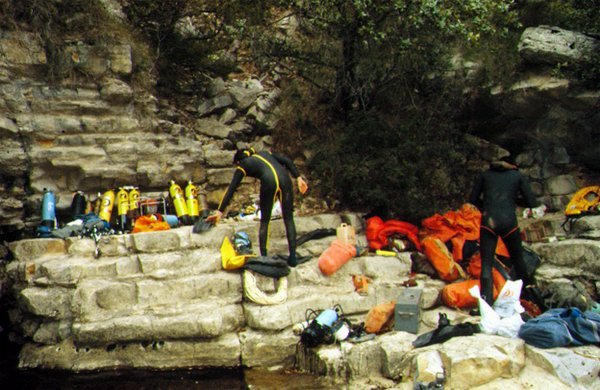 Plus tard, une plongée du GEPS avait permis le franchissement de deux courts siphons de 15 et 4m, puis les plongeurs du CLPA exploraient une série de conduits latéraux en 1976.