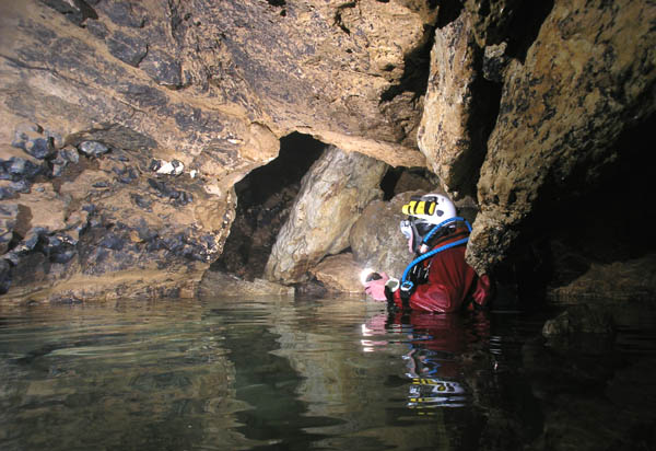 –36. Au-delà, le conduit amorce un virage et semble s'élargir. Réservé aux petits gabarits.