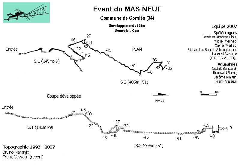 Les 21 et 22 avril 2007, l'exploration progresse de 20m du fait de l'étroitesse de la fracture terminale (Hervé et Antoine Blois, Michel Meilhac, Xavier Meillac, Richard et Benoit Villemejeanne Laurent Vasseur.