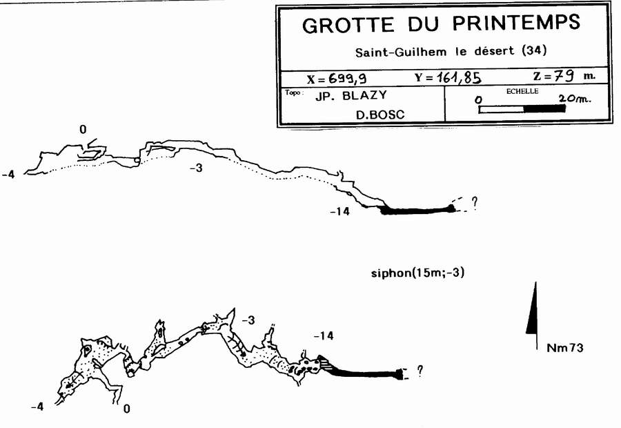 BOSC le 23/06/1972 sur 15m à -3, arrêt sur étroiture dynamitée