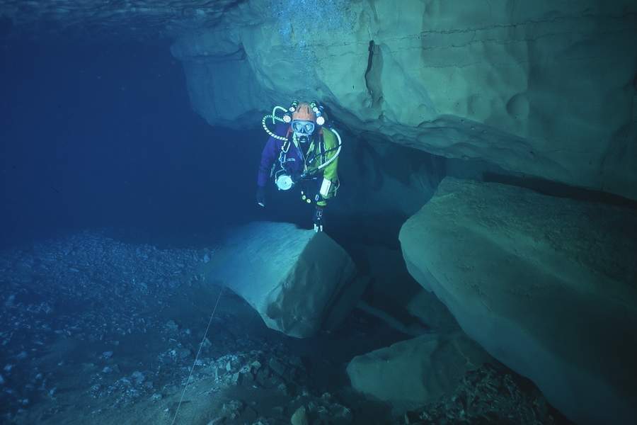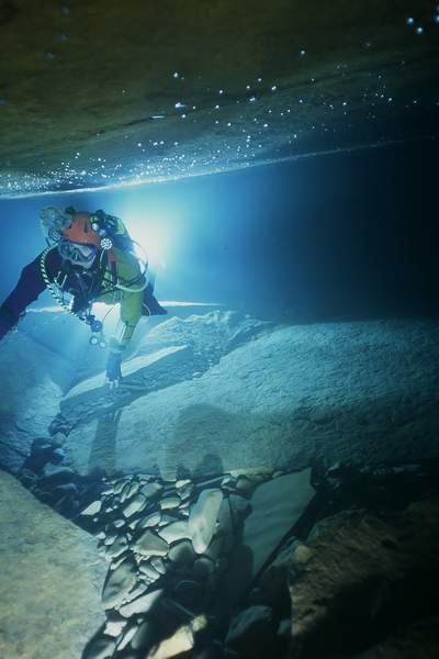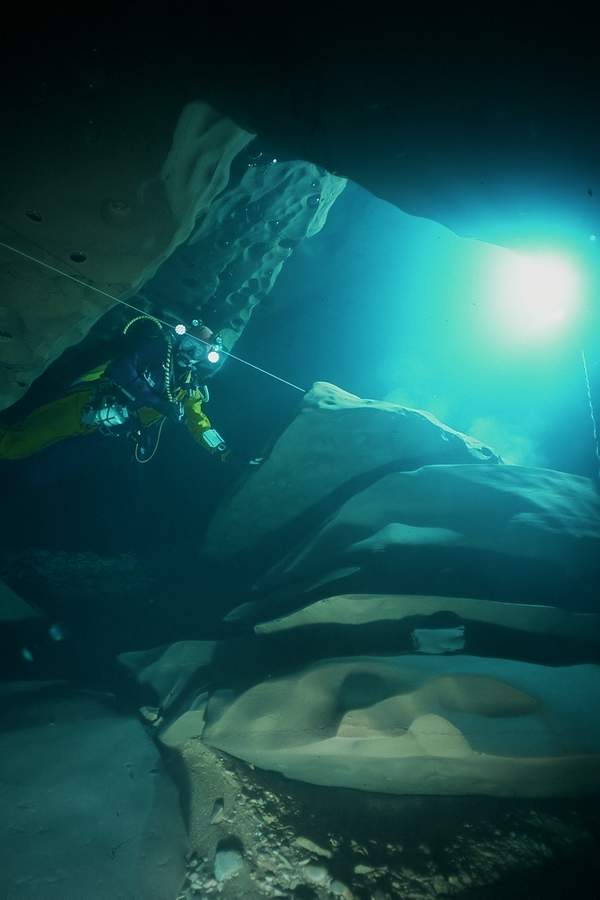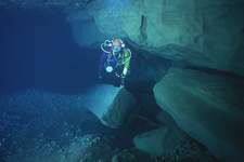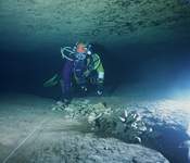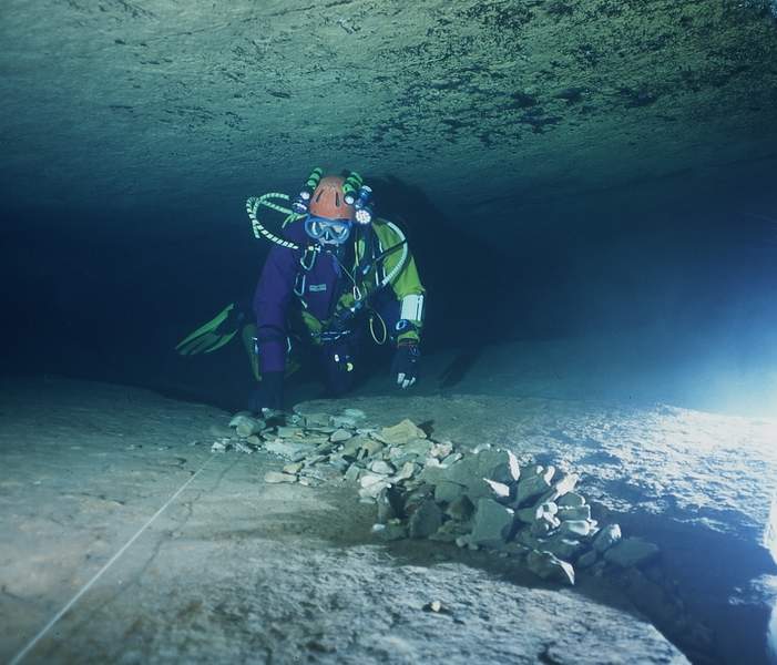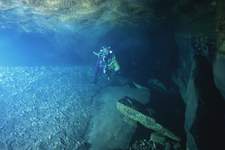 | La première exploration subaquatique eut lieu en 1968, les plongeurs de l'ASN (G.BERNIEU, CAMUS, R.LIENHARDT) progressaient de 150m (annoncés 250) jusqu'à l'étroiture. |