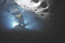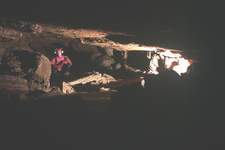 Après avoir traversé une zone chaotique, la cavité change de morphologie à 220m du départ.