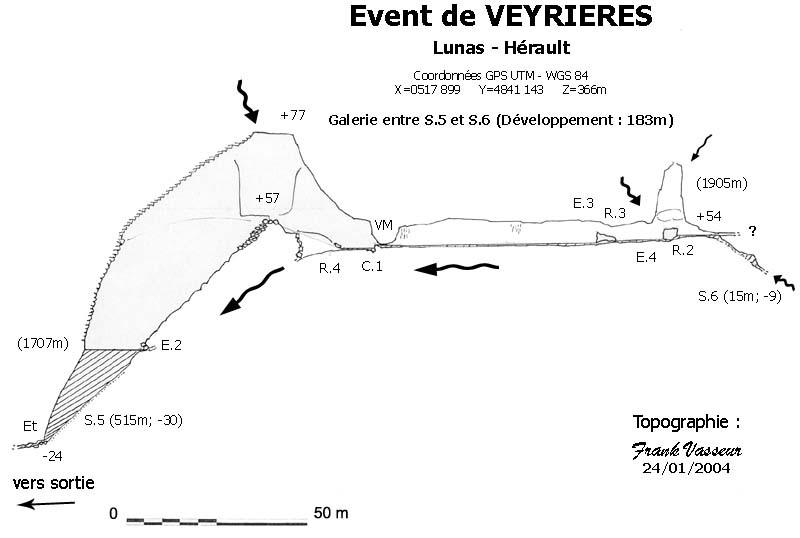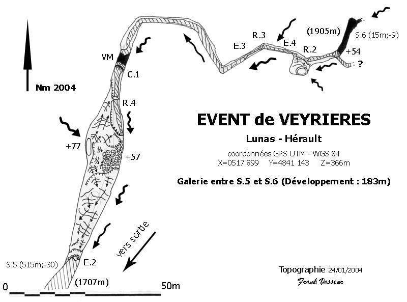 Le 10/01/2004, 700m sont topographiés (de l’entrée jusque dans le S.4) dans le cadre d’un stage de topographie organisé par la commission