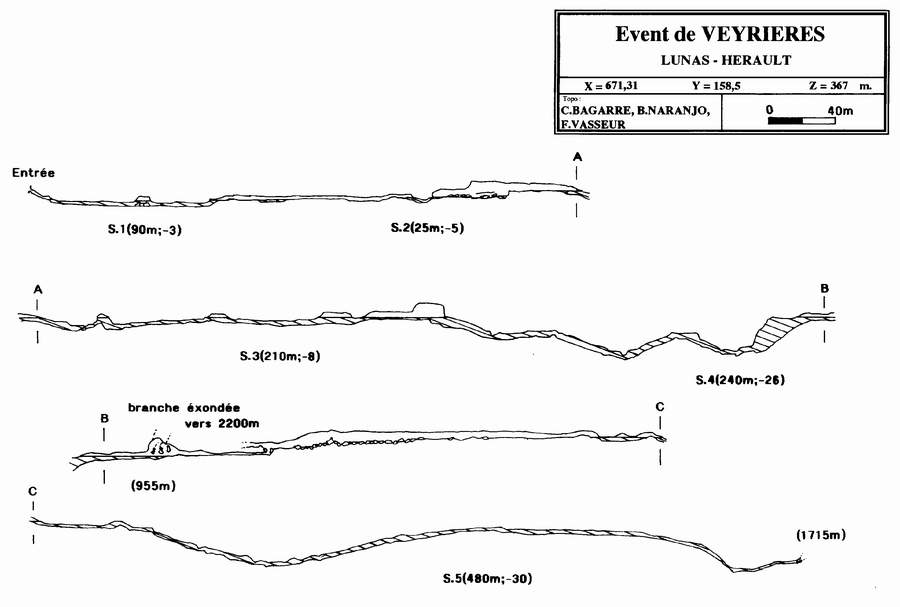 En février 1993, l'équipe de CELADON (Christian Bagarre, Bruno Naranjo, Frank Vasseur) prolonge le S.5 de 180m (-30) jusqu'à une étroiture qui