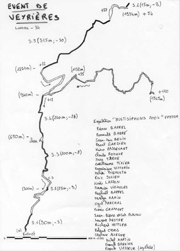 Le we des 24 et 25 janvier 2004, dans le cadre de l’expédition nationale FFESSM « Multi-siphons », le S.6 (15m ;-9) est exploré et 700m nouveaux