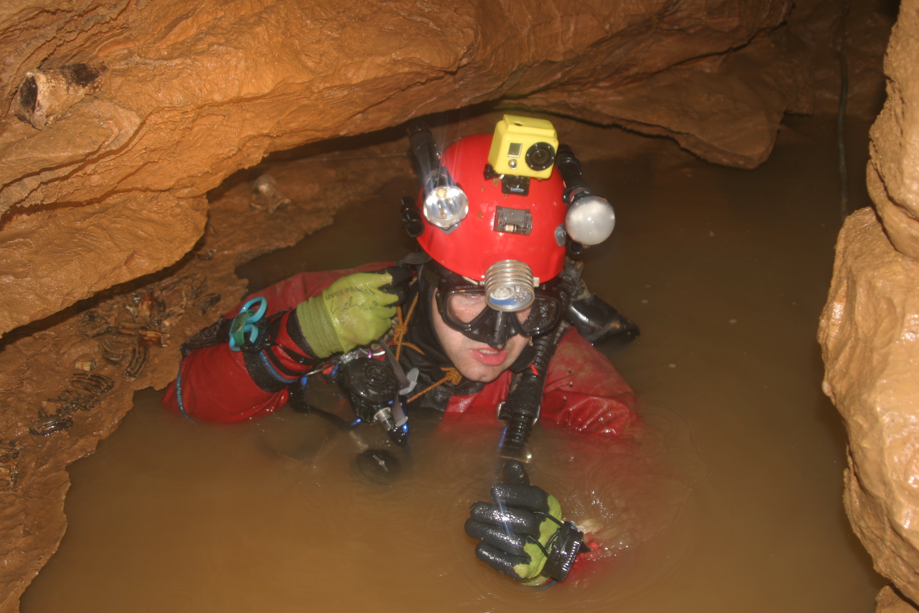 En effet, il faut se contorsionner pour pouvoir entrer dans le boyau immergé.