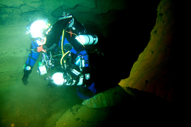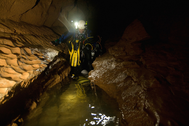 En 2008, PE Deseigne effectue deux plongées en solitaire et explore dans le S3, 200m puis 250 m de galerie vierge jusqu'à une profondeur de 58 mètres.