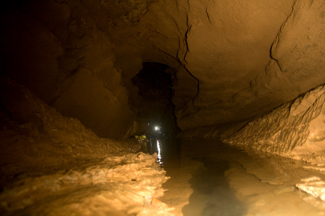 La galerie se développe alors sur 1338 mètres depuis l'entrée, dont 1208 mètres noyés.