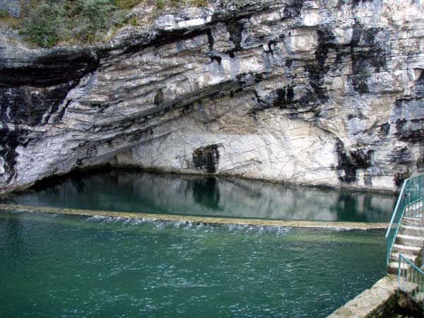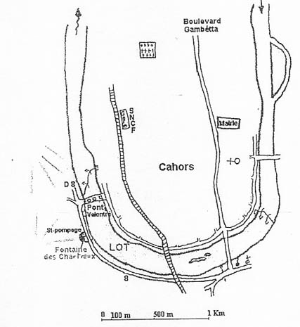 Situation (Source captée, autorisation à demander au services techniques de la mairie) Située en rive gauche au bord du Lot, à 250m en amont du pont Valentré. Contre la station de pompage. Description