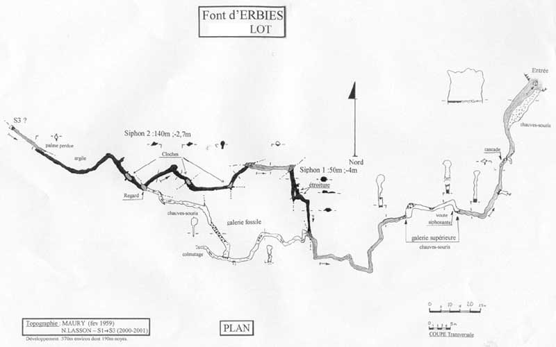 Total exploré : 220 M dont 190 m noyés.