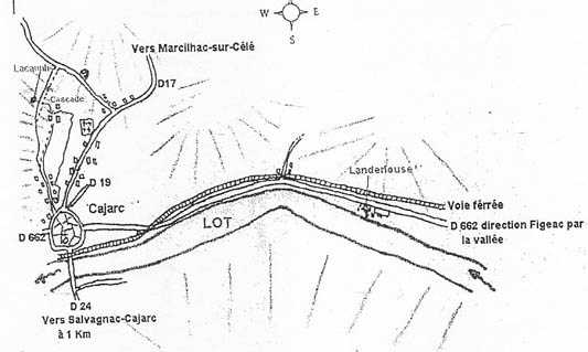 Une belle résurgence sur la berge nord du Lot à environ 1,75km en amont de Cajarc, juste en-dessous de la D662. Suivez cette D662 à la sortie de Cajarc pendant 1,75km jusqu'à ce que vous aperceviez sur la droite un chemin conduisant à un pré. Garez-vous là (pas dans le pré) et Landenouse émerge d'un bassin maçonné juste sous la route à environ 50 mètres de l'emplacement de parking. A noter qu'il n'y a pas la place pour plus de 2 ou 3 véhicules et que c'est le seul emplacement possible, sans bloque l'accès au pré. Juste après la résurgence, il y a une grosse maison et d'autres construction. Ce sont les seuls signes distinctifs de cette portion de route.