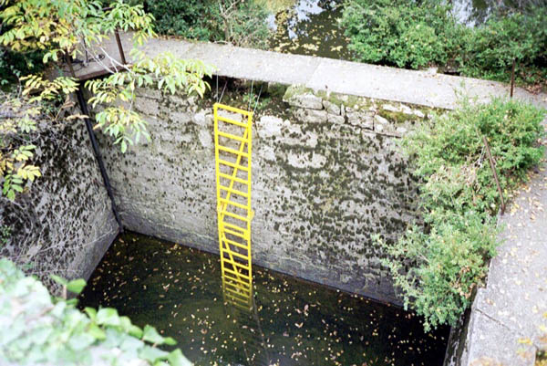 Extérieur : un mur d'environ 7 m. de haut été autrefois construit autour de cette source pour créer une retenue d'eau, afin d'alimenter deux moulins aujourd'hui disparus (dimensions :5 m. x 5 m.). En période de hautes eaux, celle-ci déborde par un déversoir. A l'étiage, le débit ne suffit pas à compenser les fuites du bassin et le niveau est 4 m. plus bas.