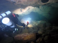 A la base de cet éboulis, débute à - 12 m., une vaste galerie horizontale qui se développe sur 350 m.