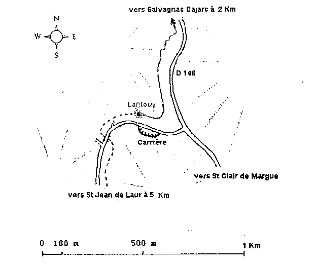 Situation De Salvagnac-Cajarc (situé à 1km de Cajarc) prendre la route en direction de Sainte Claire de Margue D146 pendant 2,5km jusqu'à un croisement. la route D146 continue tout droit vers Sainte Claire de Margue et le mas de laval. Prendre la route de droite (panneau indiquant gouffre de lantouy) sur 200m. Arrivé à une carrière de castine (panneau indicateur) la résurgence se situe 70m en contrebas, entourée d'arbres.