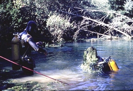 Description L'entrée de la cavité gît à -8 mètres de profondeur au beau milieu d'un large bassin. Suivez le lit de galets et de sable large et raide du passage de 2m sur 5mètres pour atteindre -44 mètres à une distance de 100 mètres de l'entrée. On arrive alors à un passage où il faut se glisser avec beaucoup de difficultés pour atteindre 20 mètres plus loin, la profondeur de -52 mètres. Habituellement la visibilité ne dépasse pas 5 mètres, mais c'est un site intéressant pour faire une plongée courte et profonde.