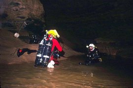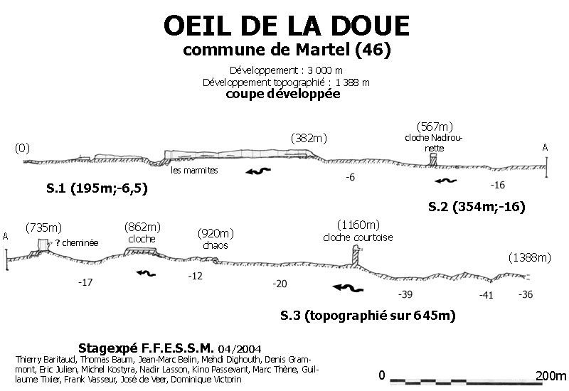 le 15.août, reconnaissent le siphon 2 sur 200 m. Arrêt faute de fil d'ariane.