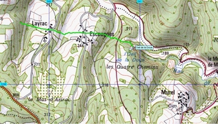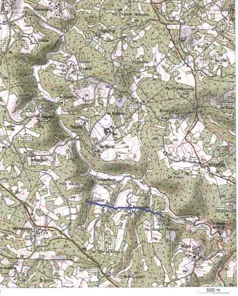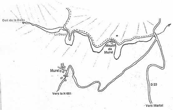 Dans Martel, prendre la D23 vers le nord. Lorsque la D23 rejoint le GR46, traversez le ruisseau « la doue » et continuer à gauche sur le chemin de terre. On passe une superbe maison sur la gauche (le moulin) et on continue jusqu’à arriver à un endroit où il y a un petit chemin piétonnier sur la gauche (avec petite barrière en bois). A cet endroit le chemin est plus large, on peut se garer.