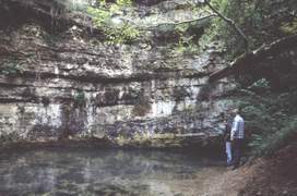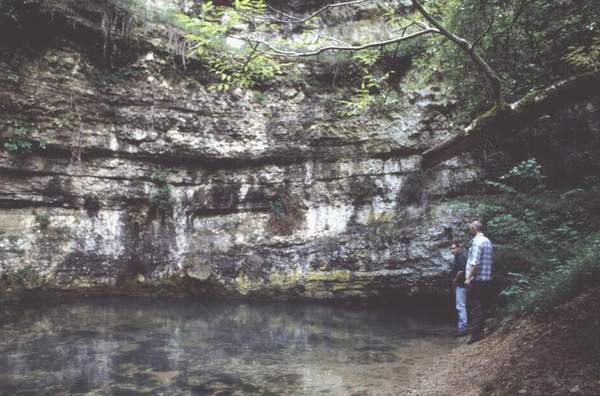 Le porche (8,5 m. de large sur 1 m. de haut) est une source jaillissant d'un joint de strate horizontal, au pied d'une falaise de 15 m de haut, sauf en période de grande sécheresse.