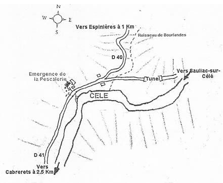 Depuis Cabreret, prendre la direction de Sauliac sur Célé D41 sur environ 2,5km. 250m avant la bifurcation allant à Espinières D40, la résurgence se trouve derrière une grosse maison dans un bassin construit au pied de la falaise.