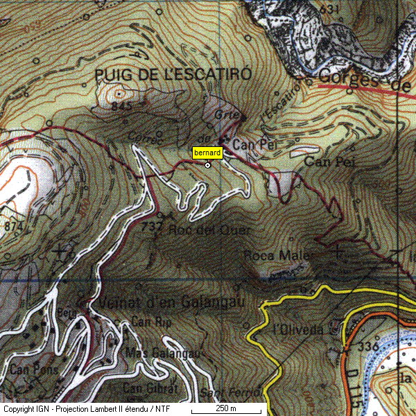 Commune de Montferrer Lambert III : x= 621,536 km y= 3017,307 km Z= 681 m |