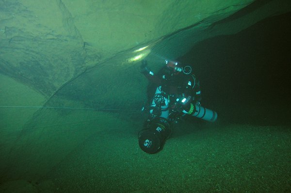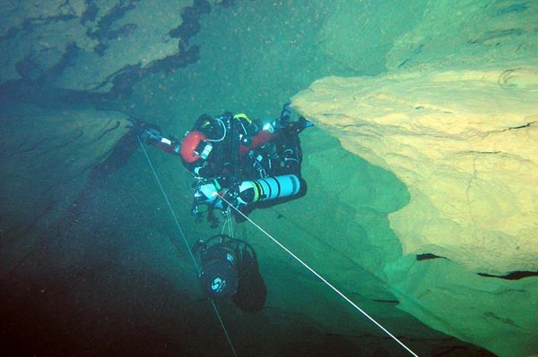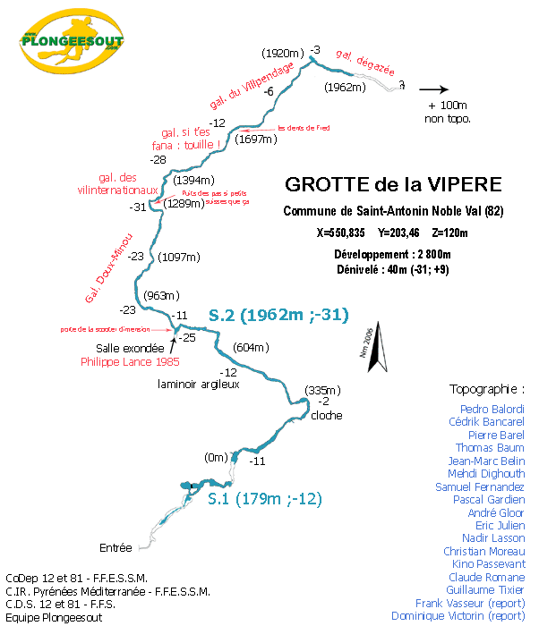 l’exploration/topographie poussées au recycleur et à la palme jusqu’à