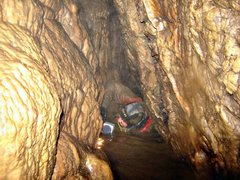 | Historique Les 10-11/10/1981, les Cadets de Brassac et les Eclaireuses et Eclaireurs de France pompent le siphon terminal et jonctionnent avec le Trou du Calel. Description Un siphon de 21m débouche, via 160m de galeries, dans le Trou du Calel. |