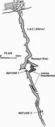 Sur nos repères, l'eau n'a pas monté. Sans un mot, nous nous allégeons de notre équipement, et dans un palmage effréné, au risque de nous faire prendre par la crue, nous tentons de rejoindre les victimes. Des vasques profondes, de la nage à contre-courant, des passages étroits entravent notre progression. Une voûte mouillante suit derrière laquelle nous apercevons une forme bleue plaquée contre la roche.
