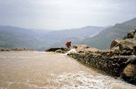 D'autres groupes prépareront les équipements. La pluie a cessé. Le thé nous brûle encore les lèvres quand nous remontons à la résurgence. Le niveau de l'eau a baissé, mais se situe à une cote encore trop importante. Des repères sont placés, et les heures passent dans une inaction pesante. Enfin, à la nuit tombante, les premières équipes pénètrent dans la grotte. A notre grande déception, la pluie recommence à tomber.