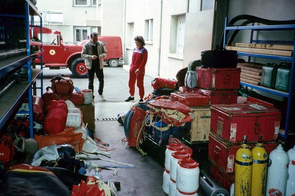 Quelques précisions sur l'opération et des renseignements administratifs ponctuent la matinée. La confirmation de départ ne donne le feu vert qu'aux alentours de 12h 30. Le regroupement se déroule au Centre de Secours Principal de Dijon, comme pour les sauvetages précédents (Pologne, Suisse etc...). L'équipe se compose, cette fois de seize membres d'origines et de milieux professionnels divers ( plombier, enseignant, médecin, maçon etc...) tous réquisitionnés par le ministère de l'Intérieur. Un seul lien nous unit, la spéléo plongée et l'esprit de solidarité qui en découle.