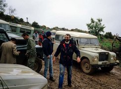 Un camion de matériel y restera ensablé jusqu'à la fin de l'opération, endommageant compresseur haute pression et matériel d'éclairage. Mais, voilà que la voie s'incline, et que de la piste, nous passons bientôt à un chemin muletier. Le sol disparaît sous la roue d'un véhicule de tête, un muret s'abat devant un autre, le sol devient glissant, il faut descendre, pousser, remonter, puis redescendre à nouveau pour alléger le véhicule.