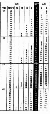 Les tables M.T 92 ( ou Comex Pro), conçues pour les scaphandriers professionnels, semblent les mieux appropriées à la p.s. pour les raisons suivantes