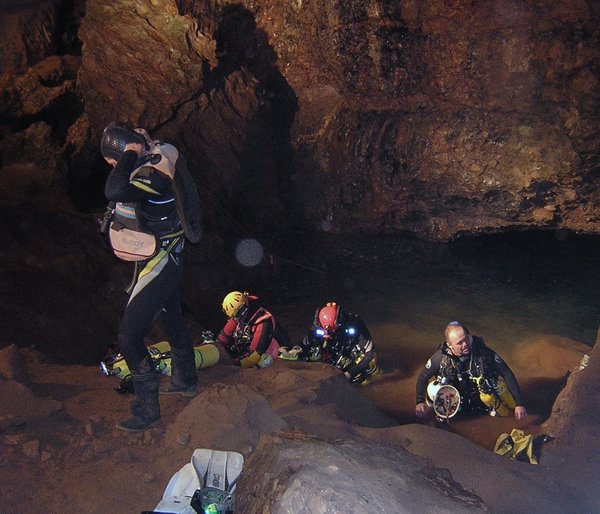 juin 2005 plongeurs solo à Wookey Hole par A. Bennett |