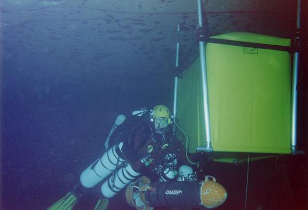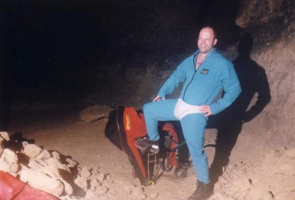 Hans Beulen a commencé la plongée souterraine en Italie où il a été dentiste pendant 15 ans. Il a même plongé à Elefante Bianco à l'époque où l'accès était encore libre. Rene Houben est de loin le meilleur plongeur souterrain que nous ayions dans ce pays. Dans la vie courante, il est plongeur commercial et il est le seul à avoir suivi une formation pour la fabrication des mélanges, ainsi, lorsque nous sommes en France, nous pouvons faire nos mélanges nous-même. Il est également le seul d'entre nous à posséder ses propres propulseurs. |