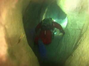 à plusieurs centaines de mètres de l'entrée. Le plongeur