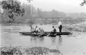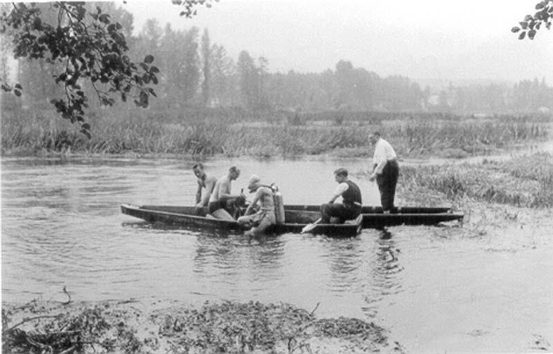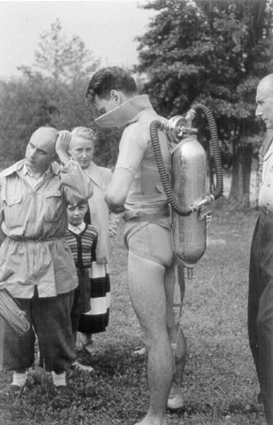 Le lundi 7 mai, après les séances d'études et de clôture, les congressistes se rendirent à la Rochefoucaud, ou un excellent repas leur fut se rvi dans la sable des Gardes du Château, aimablement prêté par M. le Duc de la Rochefoucauld. l.'après-midi fut consacré à la visite de plusieurs gisements préhistoriques sous la direction de Mlle Henri martin (Fontéchevade) et M. DAVID (Montgaudier et La Chaise). Une visite aux grottes de Rancogne, sous la conduite de plusieurs membres du Grou pement Spéléologique termina ces trois belles journées du VIII Congrès régional des Sociétés Savantes. Communications M. Philippe MONTIGNY fait le récit très détaillé des différentes plongées qu'il a effectuées dans les résurgences de la Touvre. Disons tout d'abord que ces plongées au fond des deux gouffres n'avaient jamais été réalisées et représentaient un véritable exploit à l'actif de notre sympathique collègue dont nous sommes fiers et à qui nous adressons nos plus vives félicitations pour sa har diesse et son courage. Equipé du scaphandre autonome Cousteau, M. MONTIGNY effectua une première plongée dans le fameux « Dormant » , le 28 août 1951 Rendue particulièrement pénible par la basse température des eaux, 8° à 10°, cette plongée effectuée dans la tenue ordinaire du baigneur. c'est-à-dire le simple slip, ne fut pas d e longue durée, mais permit, à notre ami, bon observateur de rapporter quelques renseignements nouveaux sur la structure de cette mystérieuse résurgence entourée d'une multitude de légendes, comme chacun sait. A une dizaine de mètres de profondeur, l'abondante végétation qui borde le gouffre, cesse complètement et laisse apparaitre les parois rocheuses de calcaire gris. Ces parois qui plongent à la verticale sont abondamment stratifiées en longues bandes horizontales fortement creusées. Certaines forment de véritables cavités, aux arêtes très arrondies usées par l'eau. Un courant puissant a dû jadis raboter et polir ces parois. L'eau n'a plus maintenant aucun mouvement sensible. Un arbre entier, entrainé au fond à la suite de l'effondrement d'une partie de la berge, git horizontallement dans cette étroite galerie rend l'exploration de cette dernière très périlleuse. Aussi. C'est très sagement que notre plongeur, transpercé par le froid, décide de remonter vers la surface. Sportivement parlant, cette descente était réussie, puisque le fond était atteint. Par la faute du froid et la présence insoupçonnée de cet arbre, aucun indice révélant l'arrivée de l'eau n'a pu être observé. Aussi Philippe MONTIGNY propose-t-il d'effectuer d'autres plongées en groupe, lorsque nos moyens financiers nous permettrons de faire l'acquisition du matériel spécial nécessaire. La plongée dans le « Bouillant », eut lieu le 10 septembre 1951. Nous laissons ici, le soin, à notre ami MONTIGNY, d'en narrer les péripéties. « Deux bateaux permettent aux « officiels » leurs observations et leur contrôle. La descente, le plus près possible du remous de la sonde lestée à quarante kilos pour résister au courant n'est pas besogne facile car les bateaux sont violemment repoussés dès qu'ils en approchent. » Par contre mon entrée dans l'eau n'est nullement pénible. Je suis muni d'une combinaison étanche qui assure une protection presque absolue contre le froid. D'ailleurs, aujourd'hui, par un caprice dont la Touvre est coutumière, l'eau est montée à 13°. C'est avec aisance et plaisir que je m'enfonce sous la surface. » L'eau du « Bouillant » est cristalline, contrairement à celle du « Dormant » et la lumière y pénètre parfaitement. Je vois au-dessus de ma tète les fonds noirs des barques et tout autour, à perte de vue, les grandes herbes courbées par le courant. Des nuées de petits pois sons s'enfuient dans tous les sens. Je nage en spirale vers le bas, les parois inclinées deviennent bientôt verticales. Le diamètre du gouffre, qui était de quinze mètres au niveau du lit de la rivière est réduit à huit mètres environ. Maintenant, plus de végétation ni de poissons. La lumière reste suffisante pour que j'aperçoive l'ensemble du gouffre à mon niveau et au-dessus jusqu'à la surface. » Les parois sont extraordinairement déchiquetées et tourmentées, des fissures profondes les coupent dans tous les sens, d'énormes dalles font des saillies et des surplombs tout autour du gouffre. J'ai l'impres sion qu'il y avait là une voûte effondrée sous la pression de l'eau ou par un cataclysme quelconque. » Emporté par mes découvertes et par l'exaltation de faire le poisson rouge, dans cet original aquarium, j'oublie de regarder où je vais et, brusquement. une giffle énorme une projette en l'air contre un sur plomb, puis me fait jaillir à la surface comme un bouchon. Je me suis approché trop près du courant. Le temps de souffler un peu, d'apprendre qu'il y a dix-neuf mètres de câble immergé, et je replonge. Je descends, cette lois prudemment, en me tenant au cible. Celui-ci est en dehors du courant et suit le fond incliné jusqu'à une grosse dalle en surplomb. Il pend ensuite librement à un mètre de la paroi nord-est et en oblique car le bateau repoussé par le bouillonnement n'est pas au-dessus du plomb. Je le suis le long d'énormes blocs inclinés qui forment cette paroi et me retrouve dans le courant. Cette fois je m'y attendais, et c'est cramponné des mains et des genoux que je m'enfonce, par un effort analogue, mais de sens inverse à celui du grimpeur de corde lisse. Deux fois la prise de mes genoux lâche et je me retrouve gigotant. les pieds en haut, le long de ma corde. Heureusement, le courant a des pulsations, je profite des accalmies relatives pour me remettre en place. Je suis si violemment secoué que l'équipe de surface - je le saurai plus tard - sent parfois la sonde soulevée du fond malgré ses quarante kilos. Je me pose enfin sur un entassement d'énormes b