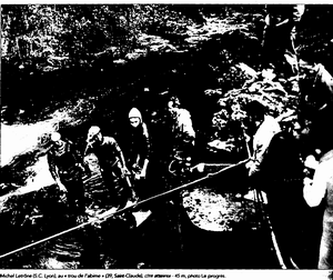 D'autre part, on voit se multiplier les plongées très éloignées des entrées de cavités, notamment en fond de gouffres : citons celles du Berger (Isère) à - 1122 (J. Dubois et B. Léger en 1968), du gouffre Pierre (Haute-Garonne) à - 580 (J.-L. Vernette et B. Sapin en 1969), de Pène Blanque (Haute-Garonne) à - 380 0.-C. Frachon en 1970), du Petit Saint-Cassien (Var) à - 320 (G.E.P.S. en 1971), de Bury (Isère) à - 355 (R. Jean et J. Dubois en 1973), etc.