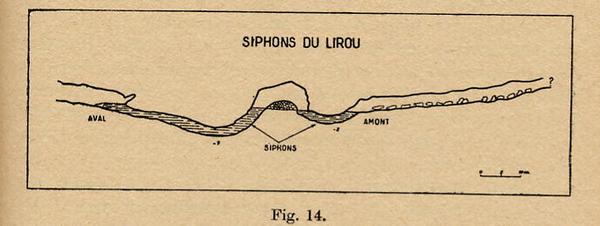 Il y a d'ailleurs siphon et siphon. Il ne s'agit parfois que d'une strate de rocher immergée dans l'eau sur quelques mètres, sous laquelle il est relativement facile de passer. Dans d'autres cas on se trouve en présence d'un tronçon de conduite forcée qui peut atteindre une longueur considérable. C'est alors, le plus souvent, une difficulté insurmontable dans l'état actuel de nos moyens.