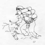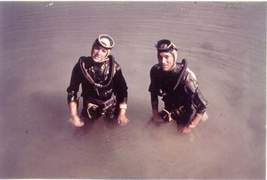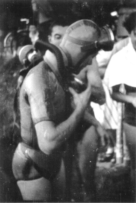 Les appareils de plongée COUSTEAU, mis au point pour les plongées en mer, doivent subir quelques modifications pour être adaptés à la plongée en siphon. Un des points les plus importants est la facilité de transport. Dans beaucoup de cas, les bouteilles de 4 litres, type COMMEINHES, donnent une autonomie suffisante. |