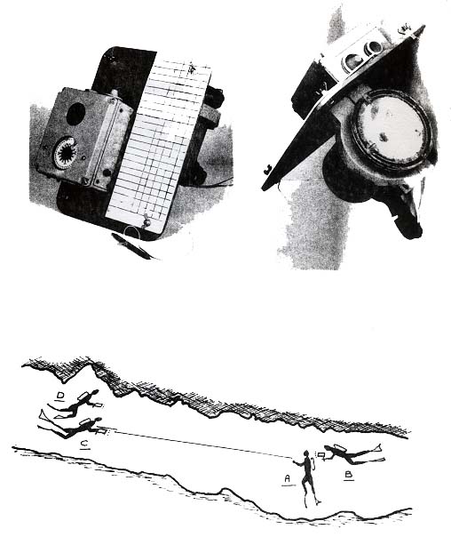 La, boussole type Topochaix - suivant les conseils du constructeur nous l'immergeons sans précaution particulière jusqu'à - 25 mètres environ. Au delà, évidemment la monter dans un boîtier séparé étanche.