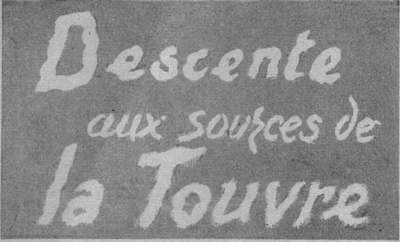 La Touvre, rivière d'Angoumois, a été présentée récemment avec charme et compétence par celui qui lui a consacré, en géographe mais aussi en poète, toute une vie de fervente recherche (1). Notre propos n'est donc pas de revenir sur ce qui a été dit, mais de raconter l'exploration de la célèbre résurgence, la deuxième de France et la troisième du monde par son débit, qui varie de trois mille à trente-cinq mille litres par seconde.